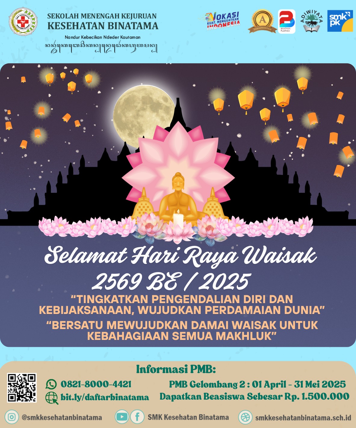 SMK Kesehatan Binatama turut mengucapkan Selamat Hari Raya Waisak kepada seluruh umat Buddha.