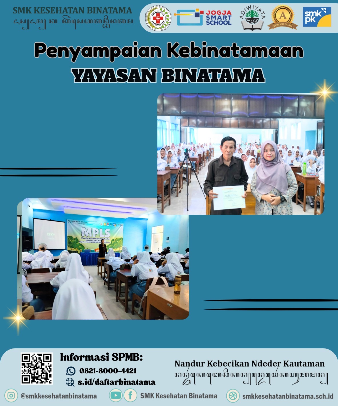 Sebagai bagian dari pembinaan karakter dan wawasan kebangsaan, SMK Kesehatan Binatama menyelenggarakan kegiatan penyampaian kebinatamaan yang diisi langsung oleh Yayasan Binatama. Kegiatan ini menjadi momen penting untuk meneguhkan nilai-nilai dasar yang harus dipegang oleh seluruh warga sekolah, baik murid maupun tenaga pendidik.