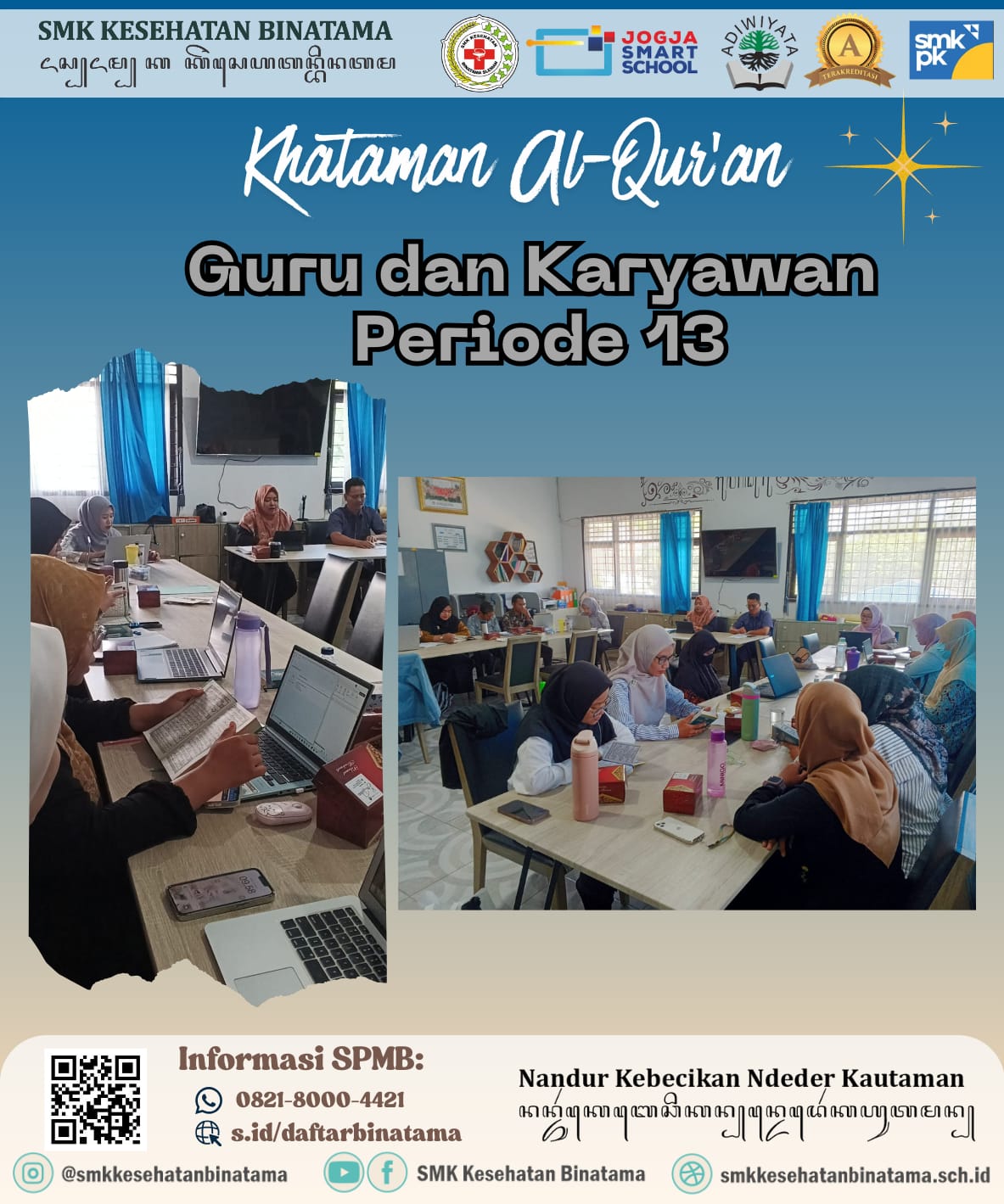 Kegiatan Khataman Al-Qur’an Periode ke-13 ini menjadi bukti nyata komitmen SMKS Kesehatan Binatama dalam menyeimbangkan aspek akademik dan spiritual, sehingga tercipta lingkungan pendidikan yang tidak hanya unggul secara kompetensi, tetapi juga kuat dalam karakter dan nilai keagamaan.